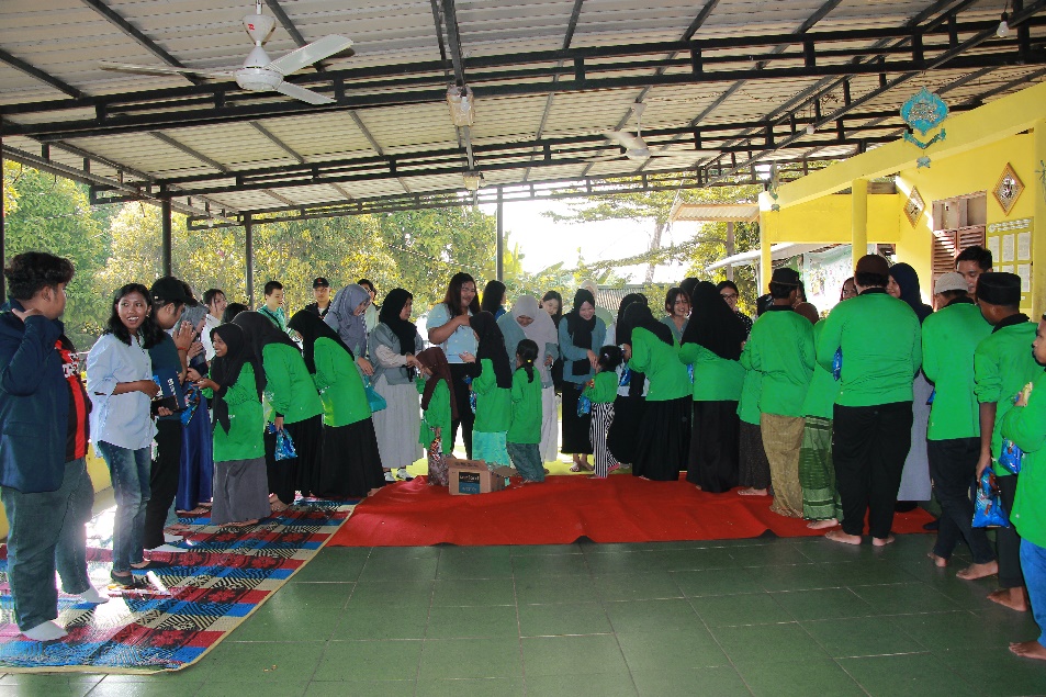 Susunan acara dimulai dari pembukaan acara oleh MC lalu dilanjutkan dengan pembacaan ayat suci al-quran oleh perwakilan adik-adik dari Yayasan. Berikutnya kata sambutan Kaprodi PBI, Ms. Leil Badrah Zaki, S.Pd., M.Pd., Pembina Yayasan, Bapak Ahmad Yani dan dari Ketua PkM, Chariyani Tindaon. Dan dilanjutkan dengan pembacaan doa oleh Bapak Ahmad Yani.
