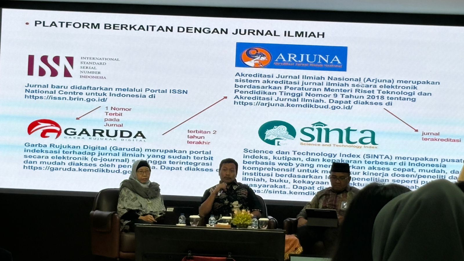 (Pemaparan materi terkait platform jurnal ilmiah seperti SINTA, GARUDA, dan ARJUNA oleh Narasumber)