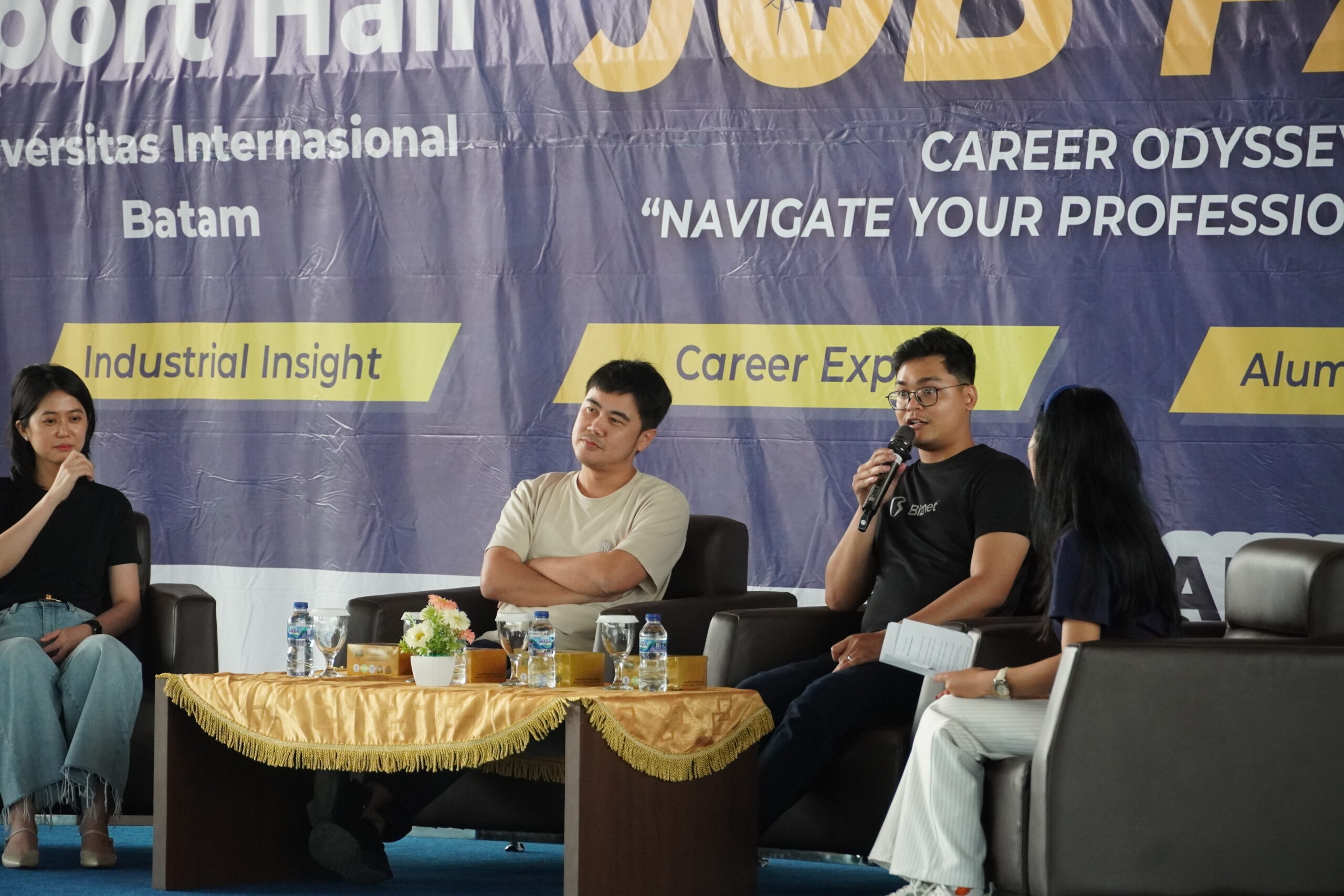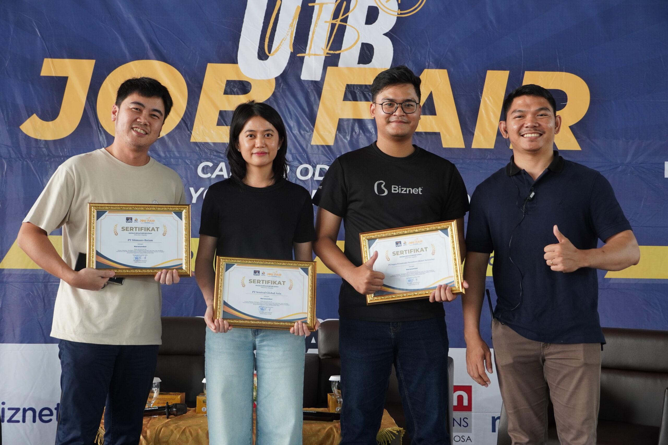 Pada tanggal 16 November 2024, dalam rangkaian kegiatan UIB JOB FAIR #4, Biro Pengembangan Kemahasiswaan dan Alumni UIB menggelar sebuah Focus Group Discussion (FGD) yang berjudul “User Talk: Building Connection and Mental Well-being at Work: Happy Employees, Healthy Company”. Acara yang dipandu oleh Putri Sinta Safira, mahasiswa Sistem Informasi angkatan 2023, menghadirkan tiga pembicara dari perusahaan terkemuka yaitu Bapak Wibowo Lee (Assistant Manager Data Technology PT Shimano Batam), Bapak Damari Zenaro (Human Capital Regional 01 PT Supra Primatama Nusantara/Biznet), dan Ibu Suyanti Toh (Co-founder PT Sentral Global Asia).
