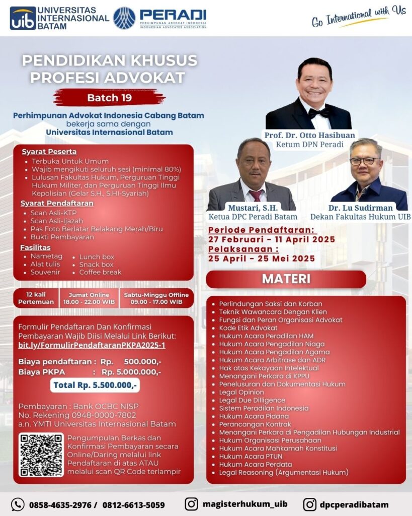 Pembukaan Pendaftaran Pendidikan Khusus Profesi Advokat (PKPA) Batch 19