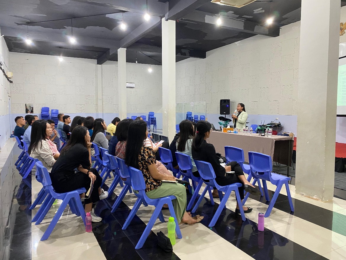 Batam, 10 Juli 2024 – Program Studi Pendidikan Bahasa Inggris (PBI) telah mengirimkan perwakilan dosen atas dasar undangan dari SMA Kristen Tabqha untuk menjadi pembicara di Seminar to Organize the 2024/2025 Academic Year selama 2 hari yakni 09 – 10 Juli 2024. Seminar ini dilaksanakan secara offline di SMA Kristen Tabqha dari pukul 08.00 – 12.00 WIB. Peserta/guru yang mengikuti seminar ini sebanyak 25 orang.