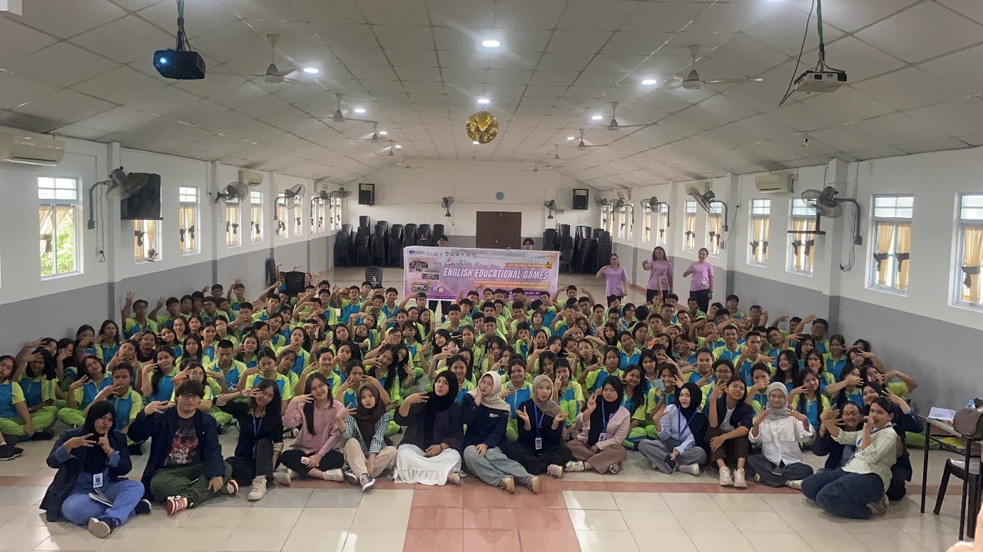English Educational Games di SMA Tunas Baru Jin Seung Batam diselenggarakan oleh Program Studi Pendidikan Bahasa Inggris UIB bekerja sama dengan EDSA, HMPS PBI, serta mahasiswa PBI angkatan 2025. Program ini bertujuan untuk menciptakan suasana pembelajaran bahasa Inggris yang menyenangkan, komunikatif, dan aplikatif, sekaligus mendorong siswa untuk berani menggunakan bahasa Inggris secara aktif dalam suasana yang santai dan penuh kebersamaan.
