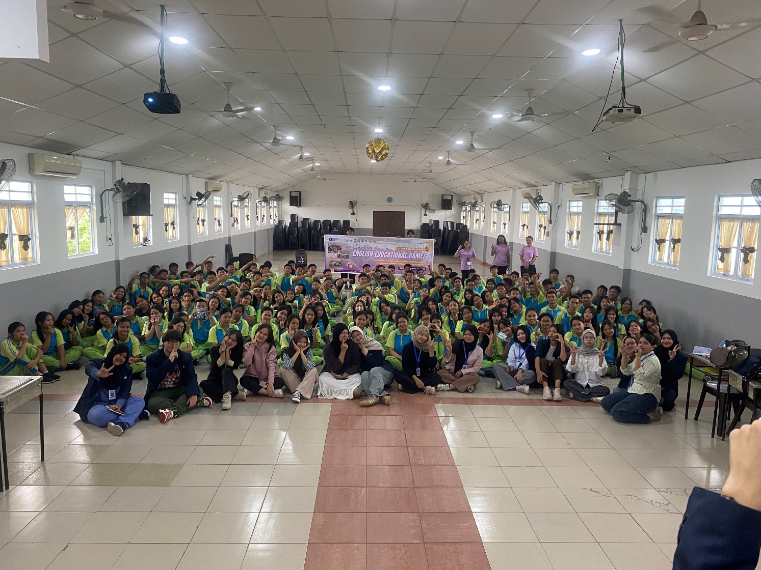 Permainan dirancang untuk melatih kosakata, pelafalan, kerja sama tim, serta kepercayaan diri siswa dalam menggunakan bahasa Inggris. Seluruh peserta dibagi ke dalam beberapa kelompok dengan didampingi buddy dari tim panitia, sehingga setiap siswa dapat berpartisipasi aktif dan berkompetisi secara sehat. Antusiasme peserta terlihat jelas dari keaktifan siswa dalam mengikuti setiap tantangan, sorak sorai yang memenuhi aula, serta semangat kebersamaan selama kegiatan berlangsung.