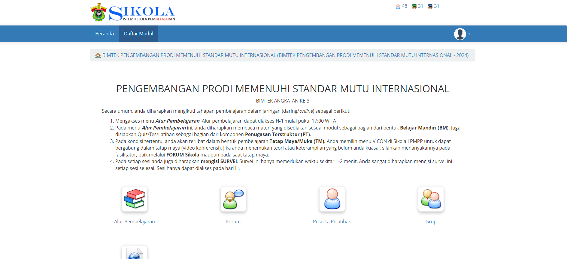 BIMTEK dimulai pada tanggal 3 Juli 2024 dan dibuka secara langsung oleh BELMAWA Diktiristek Kemdikbud. Pada kesempatan ini, BELMAWA menyampaikan materi mengenai kebijakan-kebijakan dalam standar mutu internasional perguruan tinggi. Pembelajaran pada BIMTEK ini umumnya dilakukan melalui sistem pembelajaran daring Universitas Hasanuddin, SIKOLA (Sistem Kelola Pembelajaran).