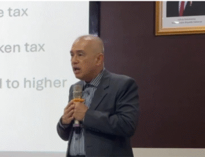 Melalui penjelasan berbasis hasil riset, Bapak Assoc. Prof. Dr. Iskandar Itan menguraikan bahwa tata kelola perusahaan yang kuat berkorelasi dengan praktik perpajakan yang lebih etis, sementara kepemilikan keluarga tidak secara otomatis menentukan tingkat kepatuhan pajak. Beliau juga membahas perbedaan pengaruh antara CEO keluarga dan non-keluarga terhadap perilaku perpajakan perusahaan, yang disampaikan dengan gaya interaktif dan mudah dipahami. Kegiatan semakin menarik melalui sesi diskusi dan tanya jawab yang berlangsung dinamis.