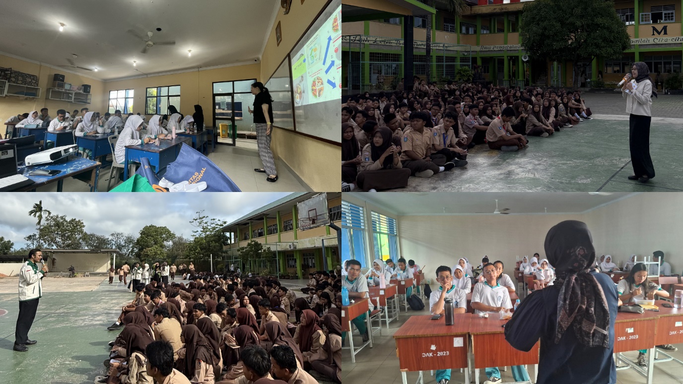 Program Studi Gizi Universitas Internasional Batam (UIB) melaksanakan kegiatan Gizi Goes to School di beberapa sekolah menengah di Kota Batam pada tanggal 9–13 Februari 2026. Kegiatan ini dilaksanakan oleh seluruh dosen Program Studi Gizi UIB bersama Himpunan Mahasiswa Program Studi (HMPS) Gizi UIB sebagai bentuk pengabdian kepada masyarakat serta upaya peningkatan pengetahuan dan kesadaran gizi pada remaja. Sekolah yang dikunjungi dalam kegiatan ini meliputi SMAN 4 Batam, SMAN 12 Batam, SMAN 1 Batam, dan SMK Putra Jaya School Batam. Kegiatan Gizi Goes to School bertujuan untuk meningkatkan pemahaman siswa mengenai pentingnya gizi seimbang pada masa remaja, serta mendorong siswa agar mampu menerapkan pola makan sehat dan gaya hidup aktif dalam kehidupan sehari-hari. Selain itu, kegiatan ini juga bertujuan untuk membantu siswa mengenali kondisi status gizinya sejak dini sebagai langkah pencegahan terhadap permasalahan gizi di masa mendatang.