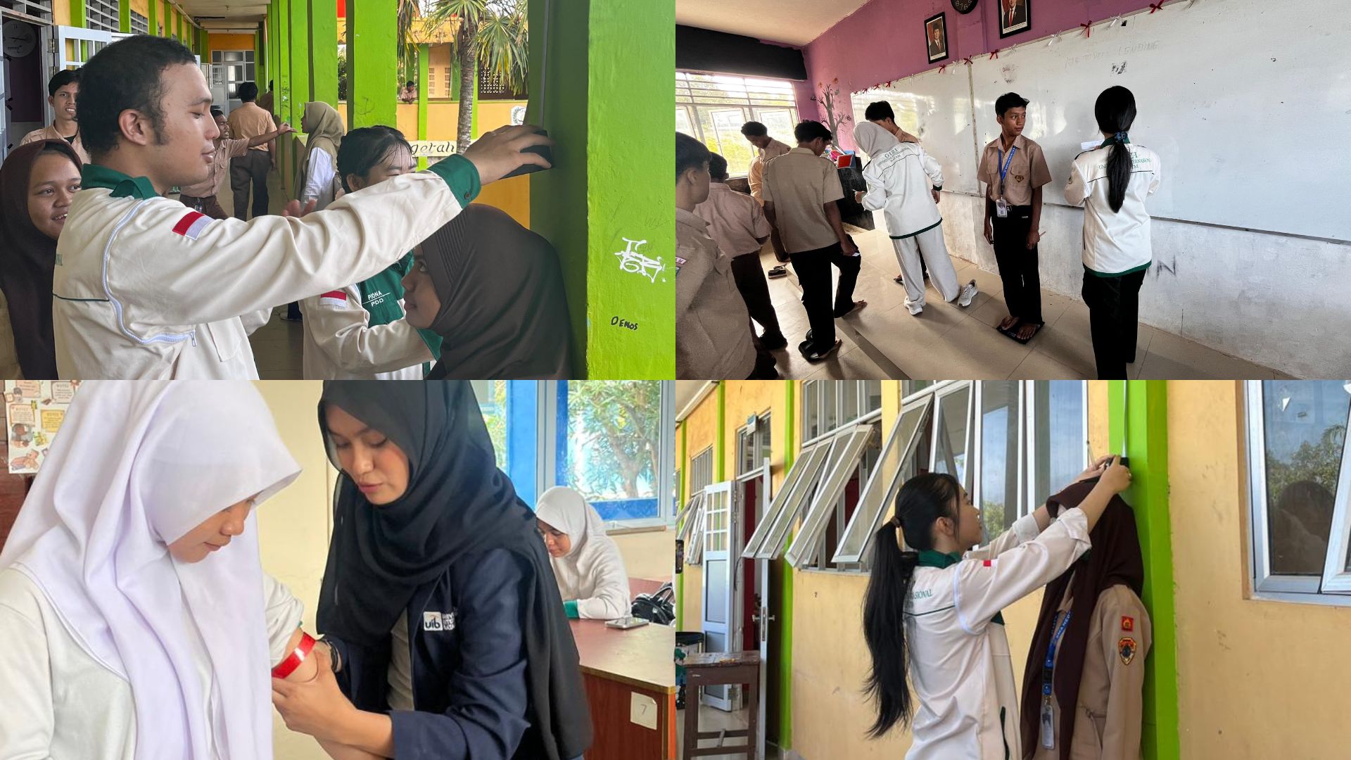 Selain edukasi, kegiatan ini juga mencakup pengukuran status gizi siswa, meliputi pengukuran berat badan (BB), tinggi badan (TB), dan lingkar lengan atas (LILA) bagi siswi perempuan. Pengukuran ini bertujuan untuk memberikan gambaran mengenai status gizi siswa serta meningkatkan kesadaran akan pentingnya pemantauan kesehatan sejak usia sekolah. Kegiatan kemudian ditutup dengan sesi kuis interaktif yang diikuti oleh siswa sebagai bentuk evaluasi sekaligus meningkatkan antusiasme peserta.