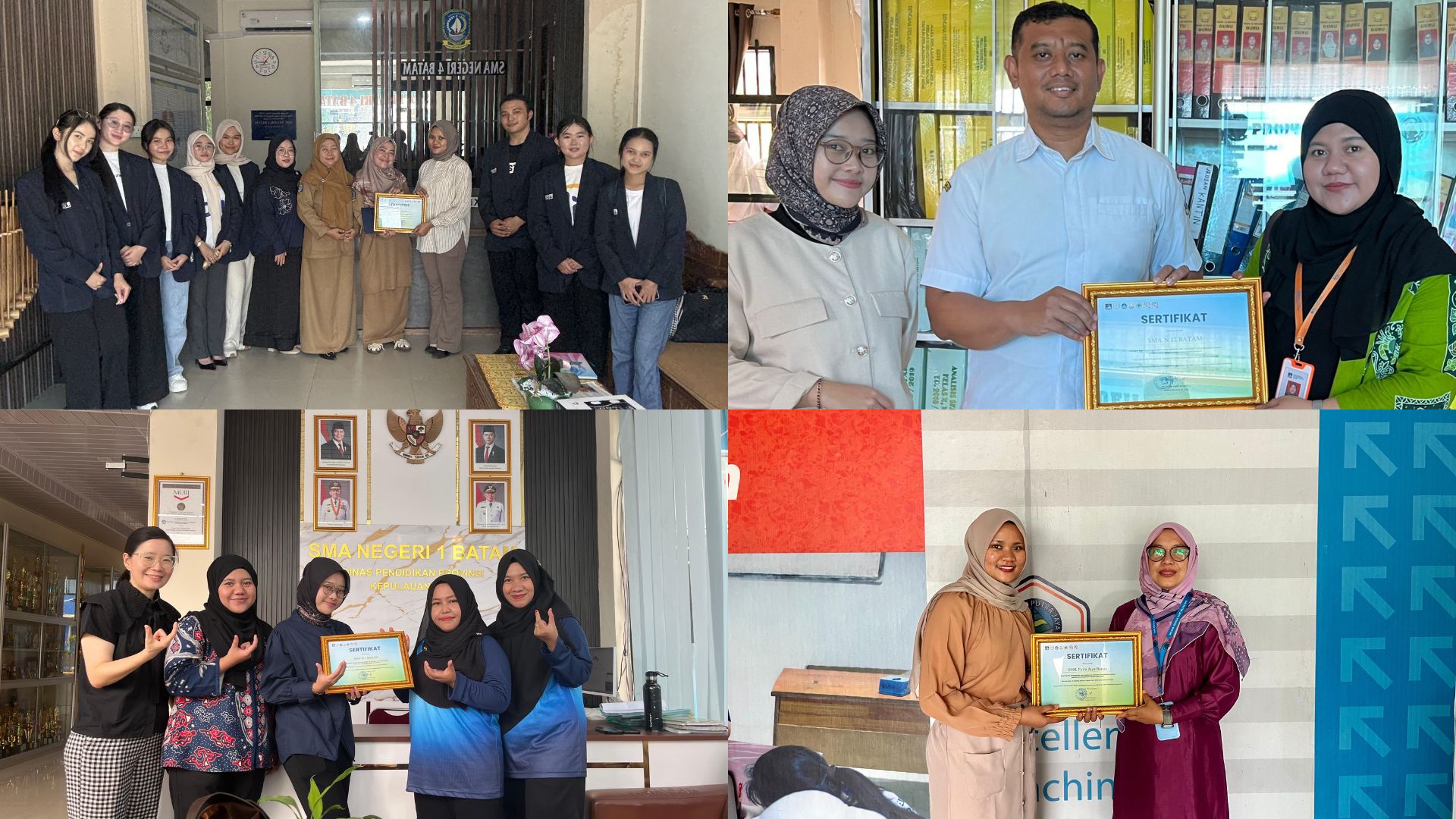 Sebagai penutup rangkaian kegiatan Gizi Goes to School, dilakukan penyerahan sertifikat dari Universitas Internasional Batam kepada sekolah-sekolah yang telah dikunjungi. Penyerahan sertifikat tersebut diwakilkan oleh dosen Program Studi Gizi UIB sebagai bentuk apresiasi atas kerja sama dan partisipasi pihak sekolah dalam mendukung pelaksanaan kegiatan edukasi gizi seimbang.