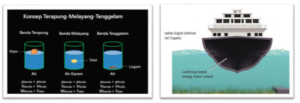 - Kapal laut dapat mengapung karena memindahkan volume air yang besar
