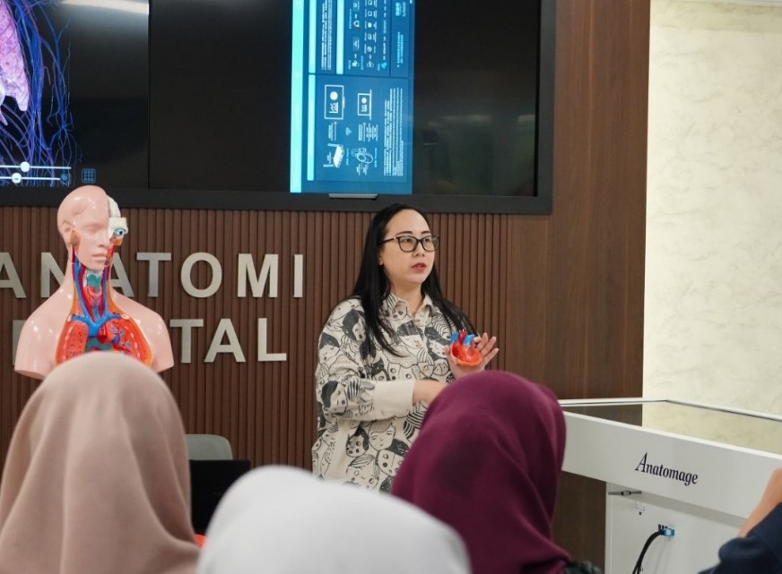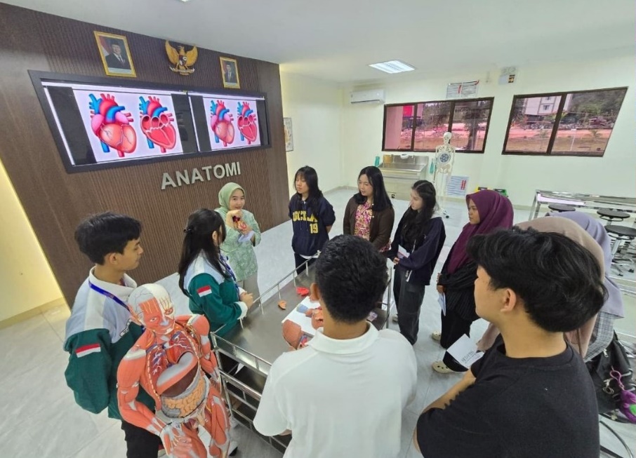 4. Anatomy Station: Untuk mempermudah pemahaman, para dosen dan mahasiswa FK UIB menjelaskan struktur anatomi jantung dengan cara yang sederhana dan visual. Penjelasan ini membantu siswa SMA memahami kerumitan organ manusia tanpa merasa terbebani oleh istilah medis yang sulit.