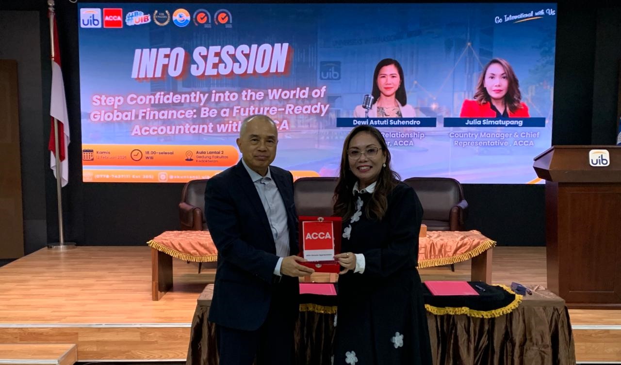 Kamis, 12 Februari 2026 – Universitas Internasional Batam (UIB) melalui Program Studi Akuntansi secara resmi melakukan perpanjangan kerja sama strategis dengan Association of Chartered Certified Accountants (ACCA). Kegiatan ini menjadi wujud komitmen berkelanjutan dalam memperkuat kolaborasi antara institusi pendidikan tinggi dan organisasi profesi akuntansi bertaraf internasional. Penandatanganan perpanjangan kerja sama tersebut dilakukan oleh Rektor UIB, Dr. Iskandar Itan, CRBC., bersama Country Manager & Chief Representative ACCA Indonesia, Julia Simatupang. Momentum ini menandai kelanjutan sinergi yang telah terjalin dalam mendukung peningkatan kualitas pendidikan dan daya saing lulusan di bidang akuntansi dan keuangan.