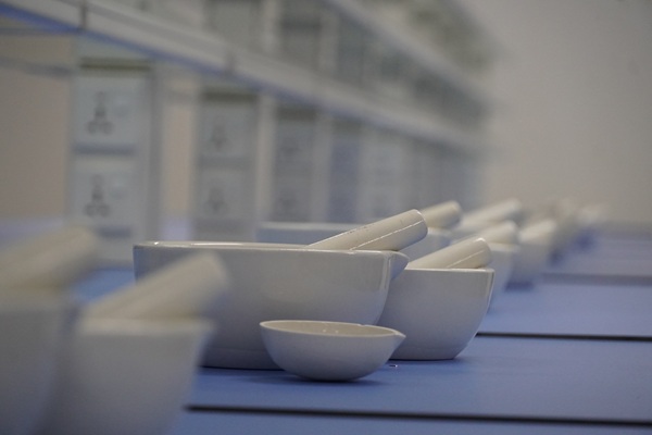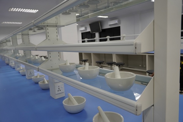 Laboratorium ini dilengkapi dengan perangkat uji farmasi, mortar untuk membuat puyer, timbangan analitikn digital.