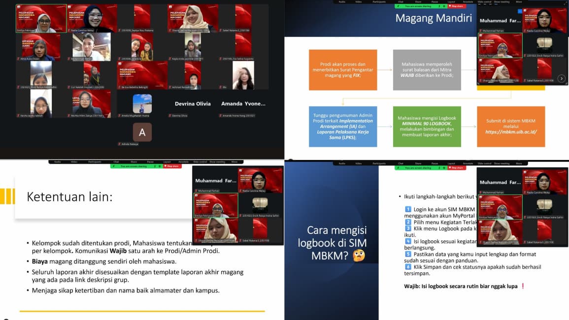 Program Sarjana Ilmu Hukum, Universitas Internasional Batam (UIB) telah melaksanakan kegiatan pelepasan mahasiswa magang untuk Semester Ganjil Tahun Akademik 2025/2026. Kegiatan ini diselenggarakan secara daring melalui platform Zoom Meeting pada Kamis, 4 September 2025, pukul 16.00 hingga 17.30 WIB. Sebanyak 24 mahasiswa mengikuti kegiatan pelepasan ini sebagai bagian dari pengembangan kompetensi praktikal di dunia hukum.