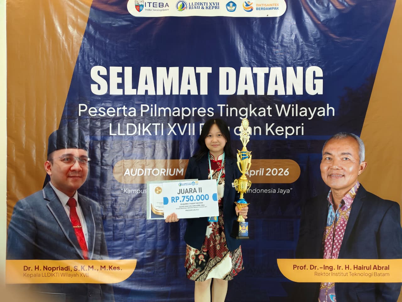 Ajang Pemilihan Mahasiswa Berprestasi (Pilmapres) Tahun 2026 Tingkat LLDIKTI Wilayah XVII yang diselenggarakan pada tanggal 15 hingga 17 April 2026 bertempat di Institut Teknologi Batam menjadi ajang bergengsi yang mempertemukan mahasiswa terbaik dari perguruan tinggi di wilayah Provinsi Kepulauan Riau dan Provinsi Riau untuk menunjukkan kemampuan akademik, kreativitas, serta kontribusi nyata bagi masyarakat. Dalam kompetisi tersebut, Delvi Yani (NIM 2341128), mahasiswi Program Sarjana Manajemen Universitas Internasional Batam, berhasil meraih prestasi membanggakan dengan menempati Juara 2 Tingkat Sarjana. Capaian ini diraih berkat konsistensi, kualitas gagasan kreatif yang inovatif, serta kemampuan komunikasi yang baik dalam setiap tahapan penilaian.