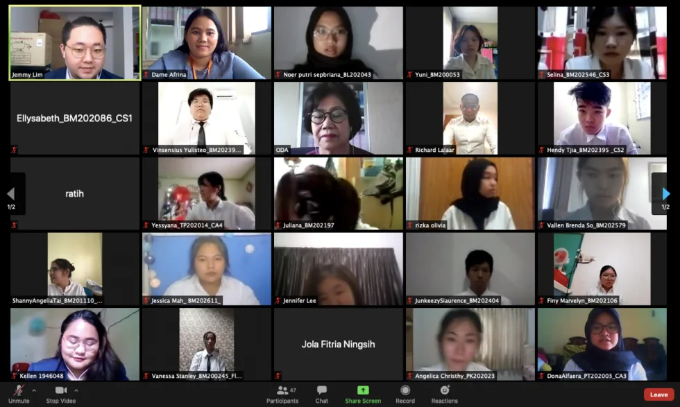 [Batam, 14 Juli 2020] Program Sarjana Pariwisata menyelenggarakan pengenalan PS bagi calon mahasiswa baru yang merupakan bagian dari kegiatan Program Pengenalan Kehidupan Kampus (P2K2). Pengenalan Program Sarjana khususnya Pariwisata diselenggarakan dengan kegiatan yang dapat memberi pemahaman mahasiswa terhadap pengetahuan umum terhadap program pembelajaran selama mereka melakukan perkuliahan, organisasi mahasiswa, bisnis dalam bidang pariwisata, perkenalan dosen, dan program internasional yang dilaksanakan dengan menyenangkan.