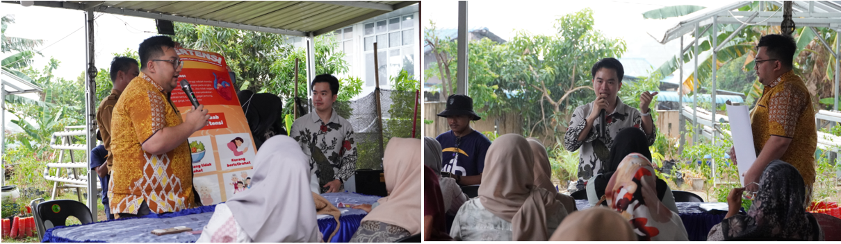 Selanjutnya, tim Program Studi Kedokteran menyampaikan materi “Edukasi Kesehatan yang Berfokus pada Penyakit Tidak Menular”, khususnya hipertensi. Dijelaskan bahwa hipertensi merupakan silent killer yang berisiko menyebabkan penyakit jantung, stroke, dan gangguan ginjal. Oleh karena itu, masyarakat diedukasi pentingnya deteksi dini melalui pemeriksaan rutin serta penerapan pola hidup sehat seperti mengurangi konsumsi garam, meningkatkan aktivitas fisik, menjaga berat badan ideal, dan mengelola stres secara efektif. Edukasi juga diperkuat dengan penyampaian Perilaku Hidup Bersih dan Sehat (PHBS), khususnya Cuci Tangan Pakai Sabun (CTPS). Peserta mendapatkan demonstrasi enam langkah mencuci tangan yang benar sebagai upaya pencegahan penyakit, mengingat kebiasaan ini memiliki dampak besar bagi kesehatan individu dan lingkungan.