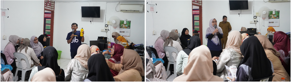 Sementara itu, tim dari Program Studi Gizi menghadirkan pemaparan serta demonstrasi pembuatan inovasi produk berbasis pangan lokal. Kegiatan ini bertujuan untuk mendorong masyarakat dalam memanfaatkan potensi bahan pangan lokal menjadi produk yang memiliki nilai tambah, baik dari aspek gizi maupun ekonomi. Melalui pendekatan ini, masyarakat tidak hanya mendapatkan pengetahuan, tetapi juga keterampilan praktis yang dapat dikembangkan menjadi peluang usaha.