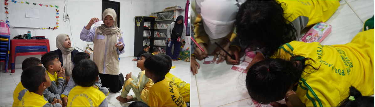 Bersamaan dengan kegiatan sebelumnya, tim Program Studi Pendidikan Bahasa Inggris memberikan edukasi di bidang pendidikan melalui kegiatan “Little English Explorers: Saying Hello and Introducing Ourselves Together” yang ditujukan bagi anak-anak usia dini. Program ini dilaksanakan dengan metode pembelajaran yang interaktif dan menyenangkan, sehingga mampu meningkatkan kemampuan komunikasi dasar dalam bahasa Inggris sekaligus menumbuhkan rasa percaya diri anak dalam berinteraksi sejak usia dini.