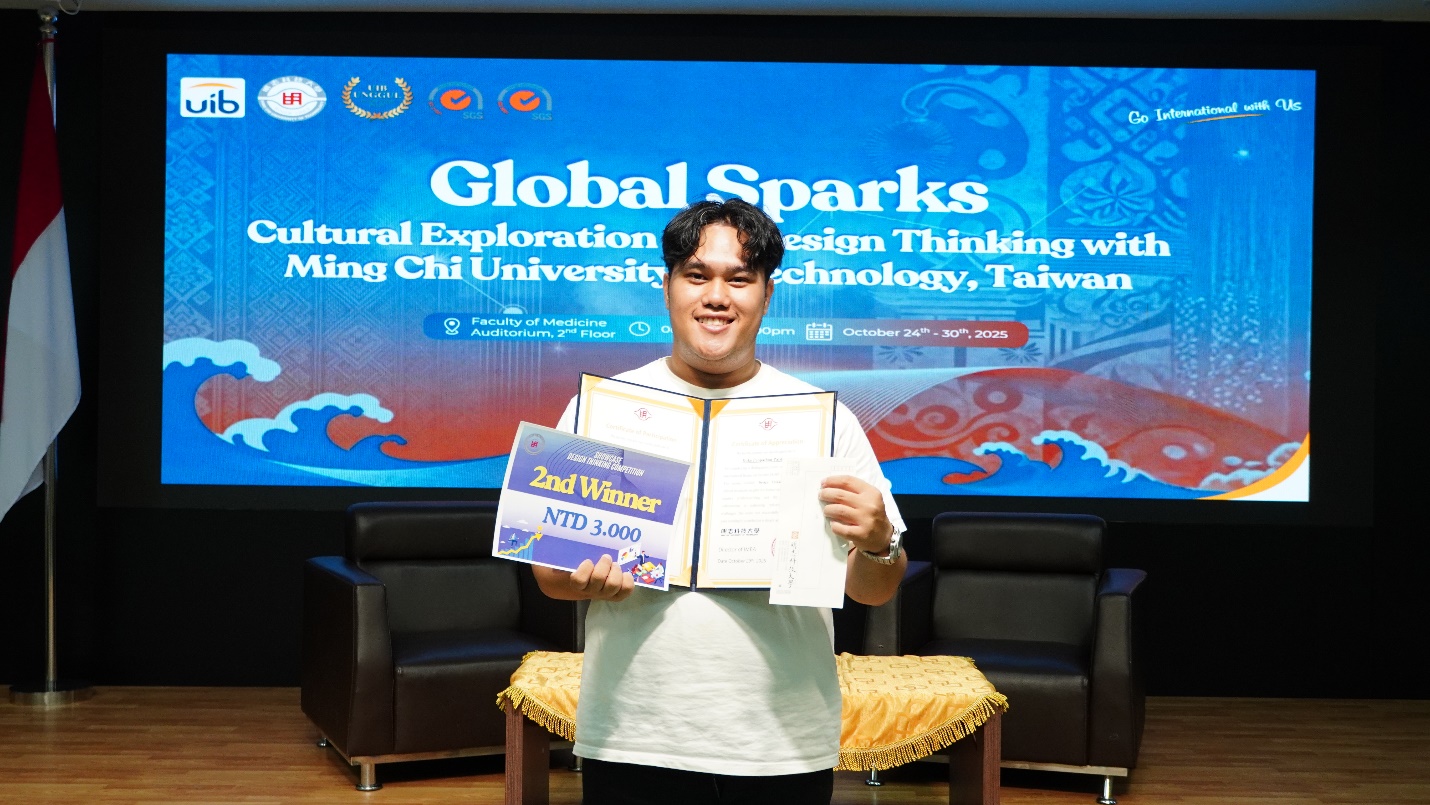 Batam, 24 Oktober 2025 – Program Studi Pendidikan Bahasa Inggris UIB, kembali mencatat prestasi membanggakan di kancah internasional. Duke Paopathon Pardede (2461001) bersama tim berhasil meraih Juara 2 dalam kompetisi Cultural Exploration Design Thinking, sebuah program internasional yang diselenggarakan melalui kolaborasi antara Universitas Internasional Batam dan Ming Chi University of Technology (MCUT), Taiwan. Kompetisi ini menjadi wadah bagi mahasiswa dari berbagai negara untuk menggali isu budaya, keberlanjutan, serta inovasi melalui pendekatan design thinking.