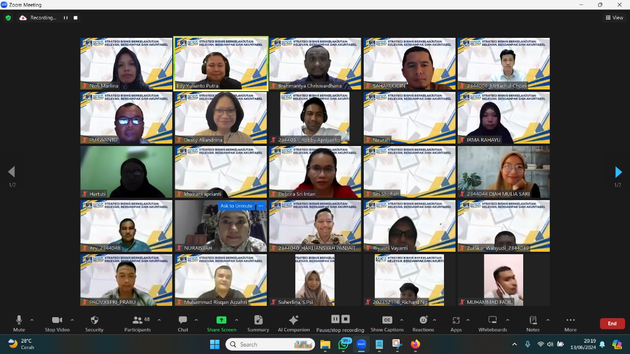 Webinar ini bertujuan untuk membahas pentingnya implementasi strategi bisnis berkelanjutan yang relevan, berdampak, dan akuntabel di era modern. Acara dibuka oleh Dr. Ratih Anggraini, S.Pd., M.M., Kepala Program Studi Magister Manajemen Universitas Internasional Batam, yang menyampaikan pentingnya peran bisnis dalam mendukung pembangunan berkelanjutan. “Bisnis yang berkelanjutan bukan hanya tentang keuntungan finansial, tetapi juga tentang kontribusi positif terhadap masyarakat dan lingkungan,” ujar Dr. Ratih.