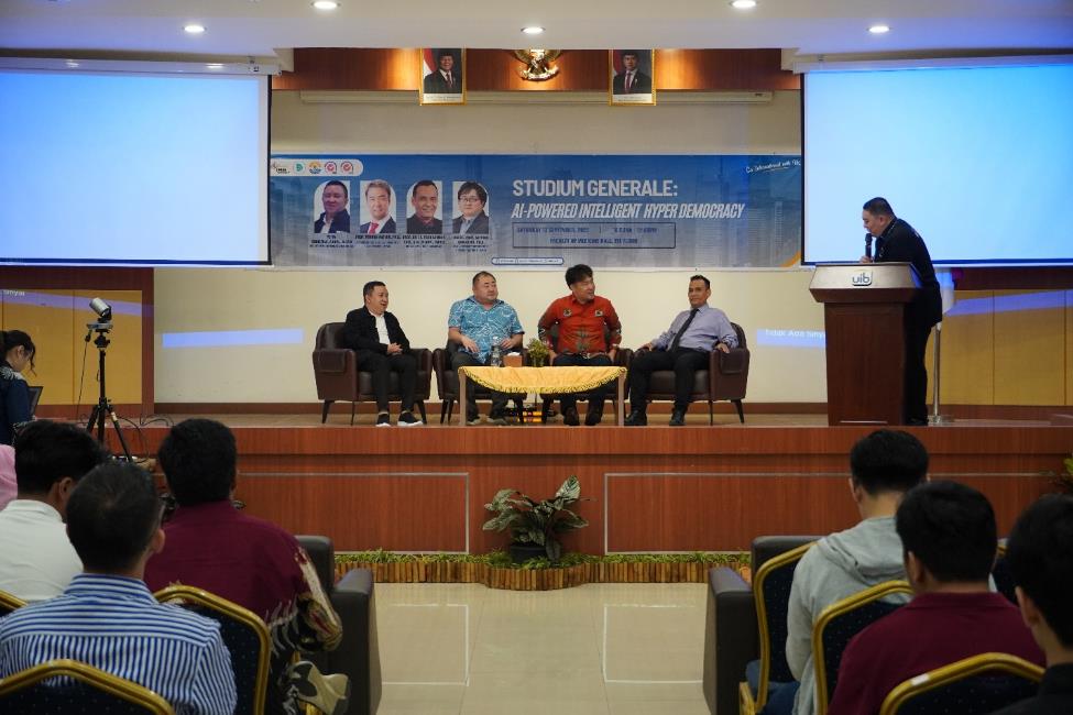 Batam, 13 September 2025 – Fakultas Ilmu Komputer Universitas Internasional Batam (UIB) sukses menggelar acara Studium Generale dengan tema “AI-Powered Intelligent Hyper Democracy”. Seminar yang berlangsung pada hari Sabtu, 13 September 2025, dari pukul 10.00 hingga 12.00 WIB ini diadakan di Aula Gedung B Lt. 1 dan dihadiri oleh lebih dari dua ratus mahasiswa UIB dari berbagai jurusan.