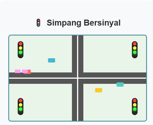 Simpang bersinyal menggunakan lampu lalu lintas untuk mengatur pergerakan kendaraan secara bergantian. Sistem ini bekerja berdasarkan waktu siklus yang telah ditentukan, dengan fase hijau, kuning, dan merah untuk setiap arah pergerakan (Khisty & Lall, 2003).