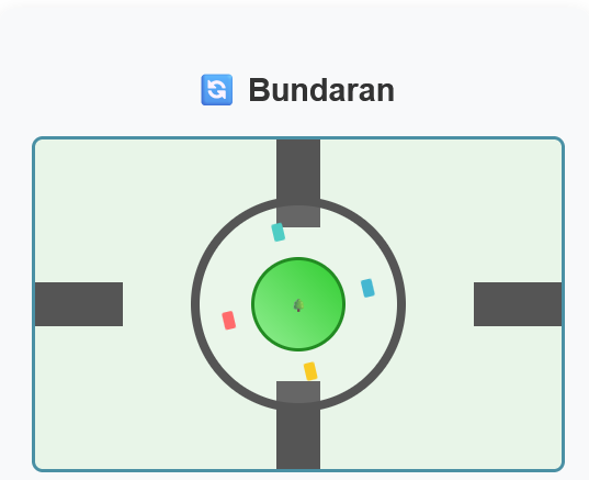 Bundaran adalah persimpangan berbentuk lingkaran dengan pulau tengah, di mana kendaraan bergerak searah jarum jam mengelilingi pulau tersebut. Sistem ini memungkinkan arus lalu lintas mengalir secara kontinu tanpa harus berhenti total, sehingga mengurangi waktu perjalanan dan konsumsi bahan bakar (Robinson et al., 2000).