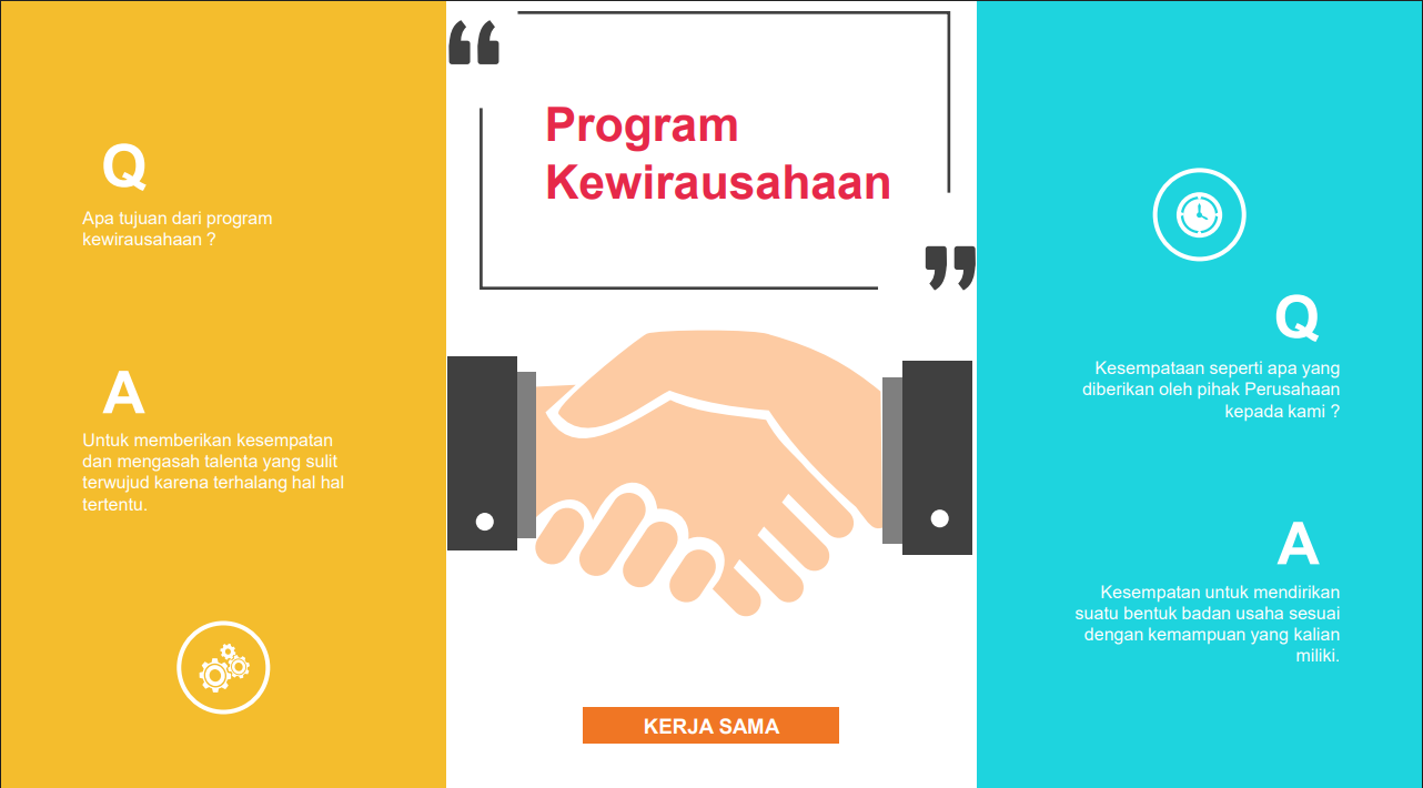 Program ini memberikan akses langsung kepada mahasiswa untuk mengajukan ide bisnis, melalui proses pengumpulan proposal, seleksi administrasi bersama pihak kampus dan perusahaan, serta tahap presentasi. Jika disetujui, mahasiswa berkesempatan menjalin kerja sama formal melalui perjanjian legal yang difasilitasi oleh perusahaan.
