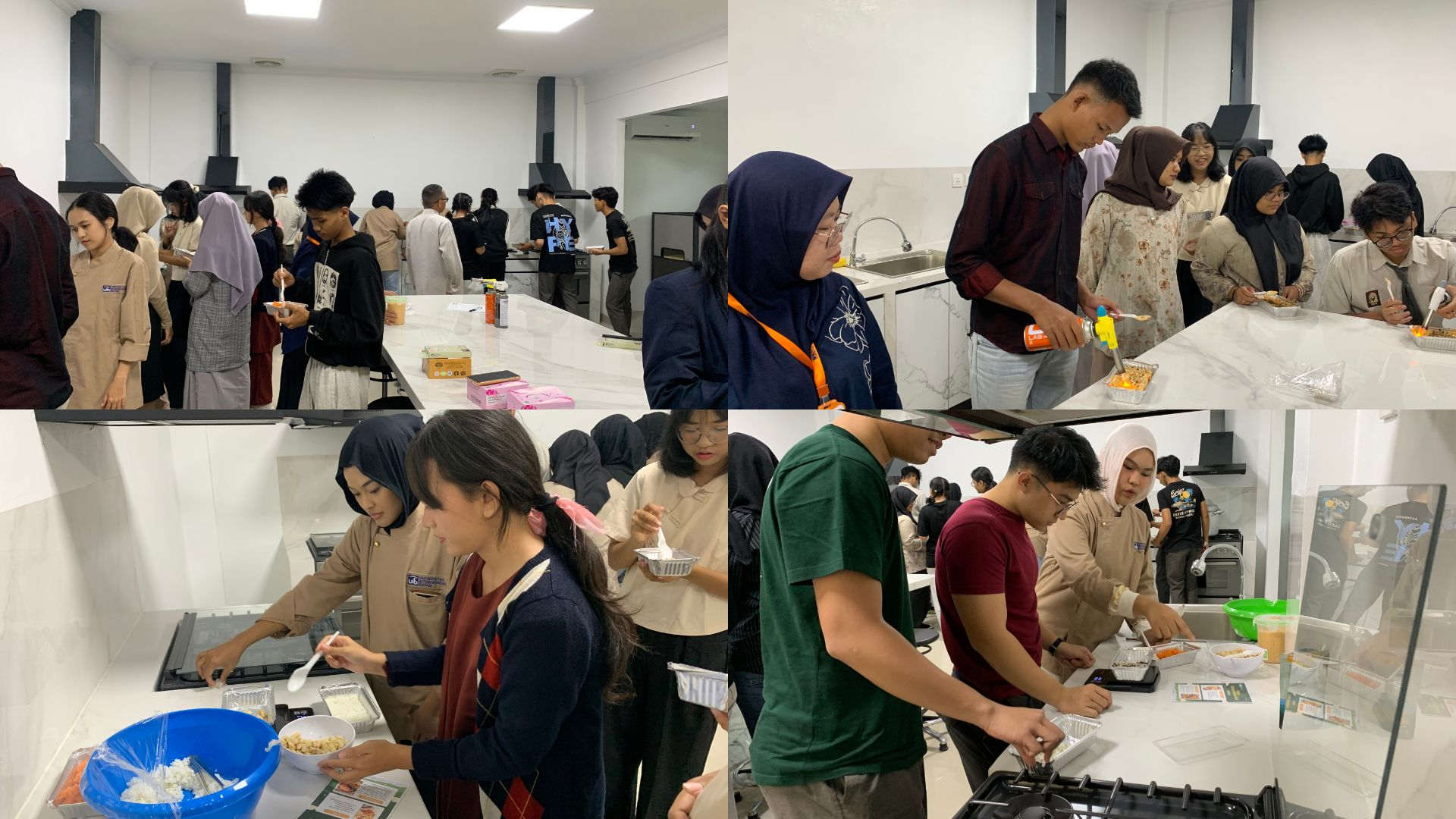 Selanjutnya, peserta mengikuti sesi pembuatan One Meal yang dibawakan oleh Adelia Paradya Zetta, S.Gz., M.Gz., dan Miftahul Jannah, S.Gz., M.Gz. selaku dosen Gizi UIB, bersama mahasiswa Gizi UIB. Pada sesi ini, peserta diajarkan cara menyusun dan memorsikan menu “Chicken Mentai Rice” dengan takaran yang aman dan sesuai dengan prinsip gizi seimbang. Peserta diajak untuk praktik langsung dalam menentukan komposisi makanan yang tepat, sehingga tidak hanya memahami teori, tetapi juga penerapannya dalam kehidupan sehari-hari.