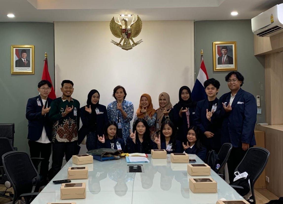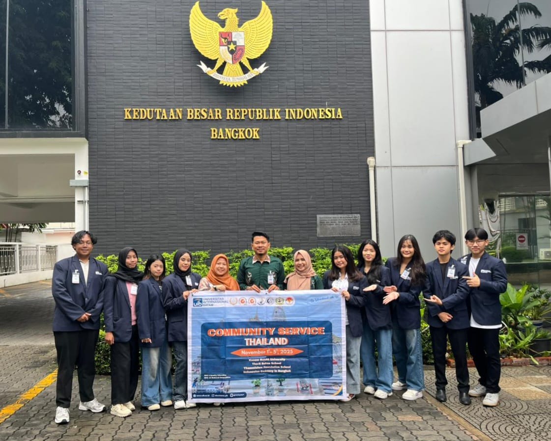 Thailand, 4 November 2025 – Universitas Internasional Batam (UIB) mengunjungi Kedutaan Besar Republik Indonesia (KBRI) di Thailand sebagai bagian dari penguatan wawasan internasional dan diplomasi pendidikan. Kegiatan ini diikuti oleh sejumlah mahasiswa UIB dari beragam prodi, yakni Akuntansi, Manajemen, Pariwisata, dan Sistem Informasi, serta didampingi oleh tiga dosen UIB. Kunjungan ini bertujuan memberikan pemahaman kepada mahasiswa mengenai peran KBRI dalam memperkuat hubungan bilateral, pelayanan diplomatik, serta dukungan pemerintah terhadap pengembangan pendidikan dan diaspora Indonesia di luar negeri. Para peserta mendapatkan kesempatan untuk melihat langsung lingkungan kerja kedutaan dan memahami proses diplomasi yang berjalan. Kehadiran mahasiswa UIB ini menjadi langkah strategis dalam mendukung visi kampus menuju internasionalisasi pendidikan.