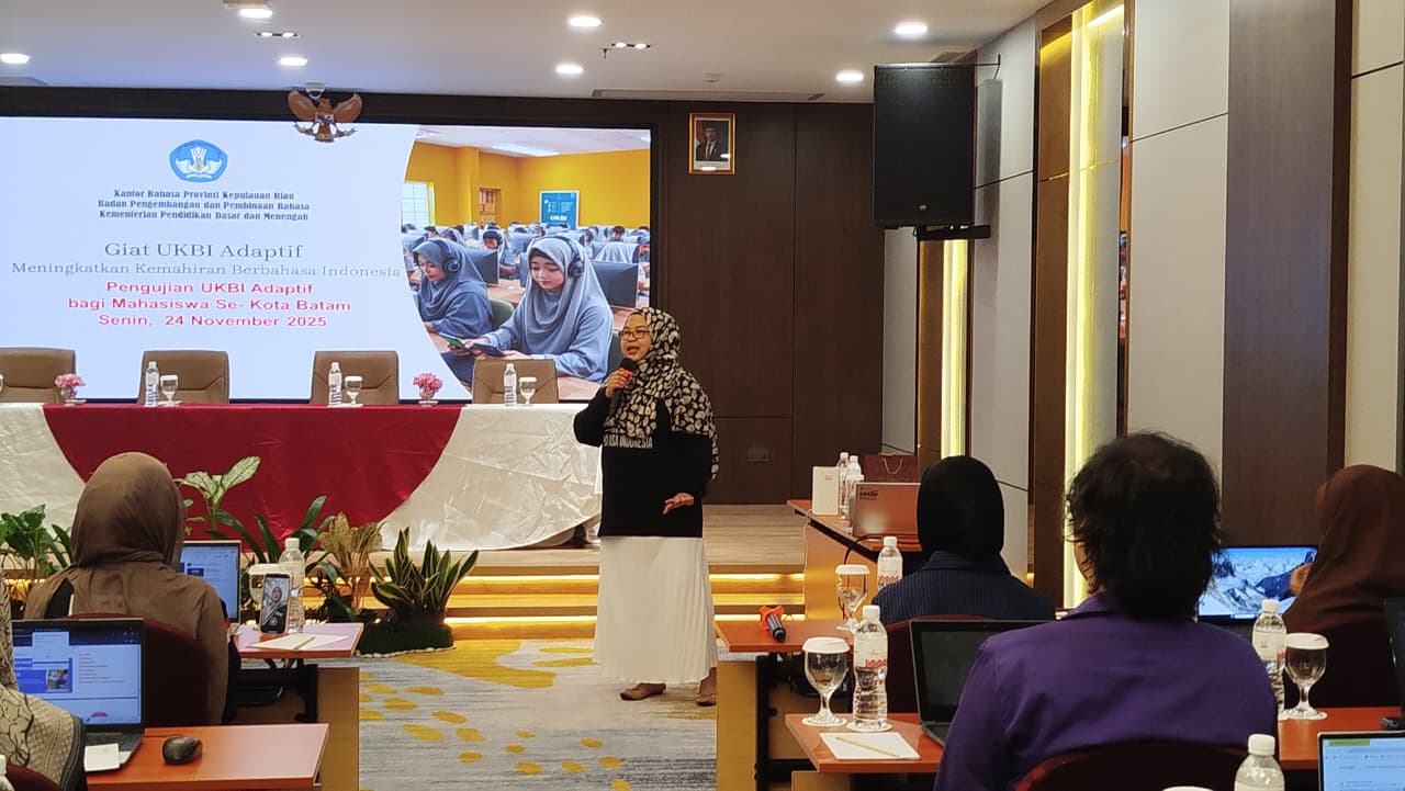 Batam, 28 Novmber 2025 – Mahasiswa sekaligus pengajar BIPA dari Program Studi Pendidikan Bahasa Inggris UIB mengikuti Uji Kemahiran Berbahasa Indonesia (UKBI) Adaptif yang diselenggarakan oleh Kantor Bahasa Provinsi Kepulauan Riau. Kegiatan ini dilaksanakan pada Senin, 24 November 2025 bertempat di Hotel Asialink, Batam, sebagai upaya mengukur tingkat kemahiran berbahasa Indonesia melalui sistem pengujian nasional yang terstandar.