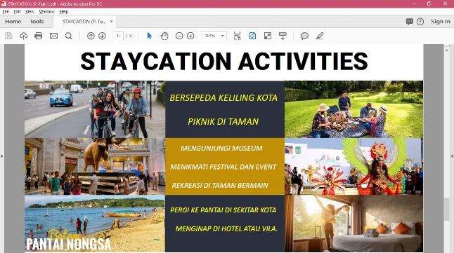 Fenomena covid-19 menyebabkan terbatasnya ruang gerak dan mobilitas manusia sehingga banyak orang tidak dapat melakukan aktifitas seperti bekerja dan hal-hal yang dikerjakan diluar rumah secara bebas. Hal tersebut menimbulkan stres bagi kebanyakan orang. Keinginan untuk melakukan wisata ke destinasi dan objek wisata sulit terwujud karena harus melakukan beberapa persyaratan seperti swab antigen dan swab PCR, serta rasa ketakutan terkena virus covid-19 menyurutkan keinginan masyarakat untuk pergi berwisata keluar kota. Dalam dunia industri pariwisata yang sedang lesu, saat ini berusaha untuk mencari perluang alternatif dengan menawarkan berbagai macam produk dan fasilitas dalam berwisata. Salah satu penawarannya adalah wisata staycation Melihat peluang dan trend staycation ini, maka Program Sarjana Pariwisata mengadakan webinar dengan judul “A New Tommorow of Destination: Staycation or Vacation” dengan narasumber dari Fantastik Tour & Travel.