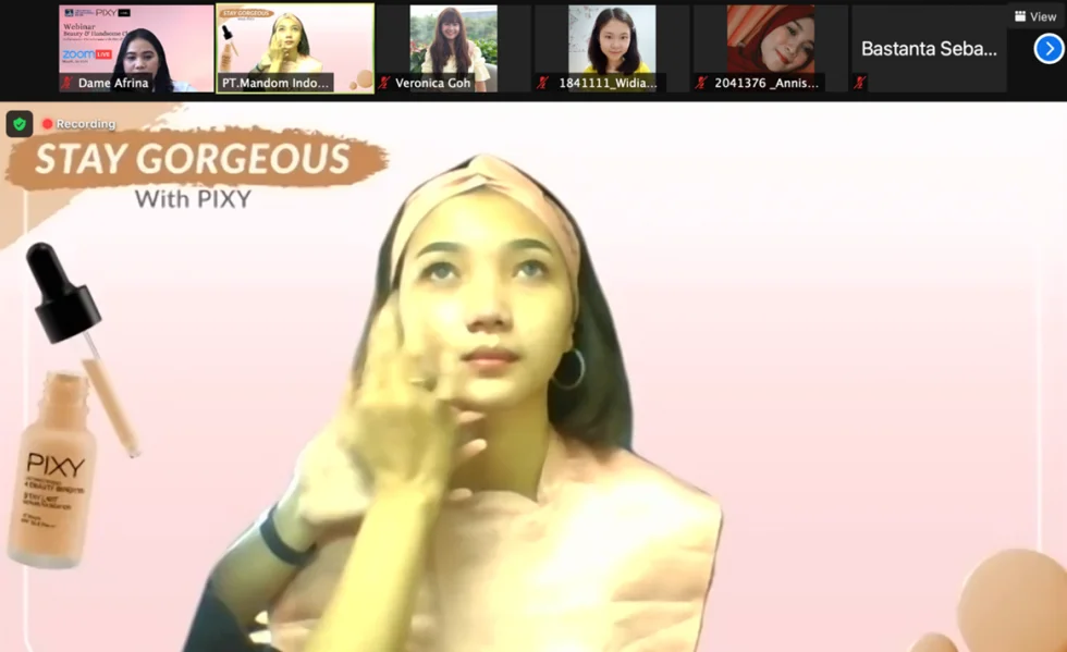 Bekerja sama dengan PIXY dan Gatsby Kota Batam, Program Sarjana Pariwisata menyelenggarakan kegiatan Beauty and Handsome Class yang dilaksanakan pada hari Sabtu, 20 Maret 2021 dengan menggunakan platform zoom. PIXY Kota Batam yang diwakili oleh Ibu Dewi Sartika, Fauziah Sari, dan Gatsby Kota Batam yang diwakili oleh Bapak Elsas dan Dino serta didampingi oleh Ibu Dame Afrina Sihombing, S.E., M.M. sebagai moderator. Dari webinar ini, para peserta diharapkan sudah dapat mengetahui kondisi kulit mereka saat ini, apakah kulit wajah normal, kering, berminyak, kombinasi, sensitif, dan berjerawat. Produk yang digunakan dan ditawarkan juga sangat banyak dan dapat ditemui dengan mudah. Bagi para wanita, memilih foundation dan bb cushion tergantung kepada kegiatan. Pemilihan foundation cair dan padat juga disesuaikan dengan kondisi kulit, foundation padat diutamakan bagi pemilik kulit kering. Pilihan vitamin dan gel rambut juga banyak pilihan dan disesuaikan dengan keinginan kita. Pemakaian vitamin rambut hanya pada ujung rambut saja, tidak digunakan hingga ke akar rambut. Dilakukan juga demo penggunaan produk dari PIXY dan Gatsby, agar para peserta lebih memahami dan mengenal produk yang digunakan.