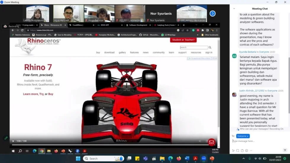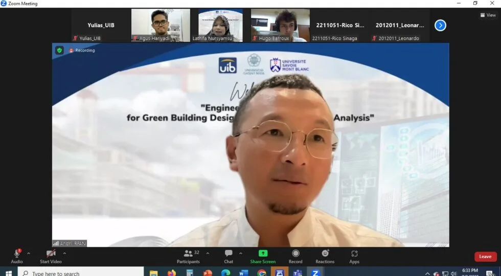 Pada tanggal 3 Juli 2023, kami dengan bangga menyelenggarakan Webinar Internasional dengan tema “Engineering Software for Green Building Design and Building Energy Analysis”. Acara ini diadakan secara daring melalui platform Zoom Meeting pada pukul 18.30 hingga pukul 20.30 WIB.