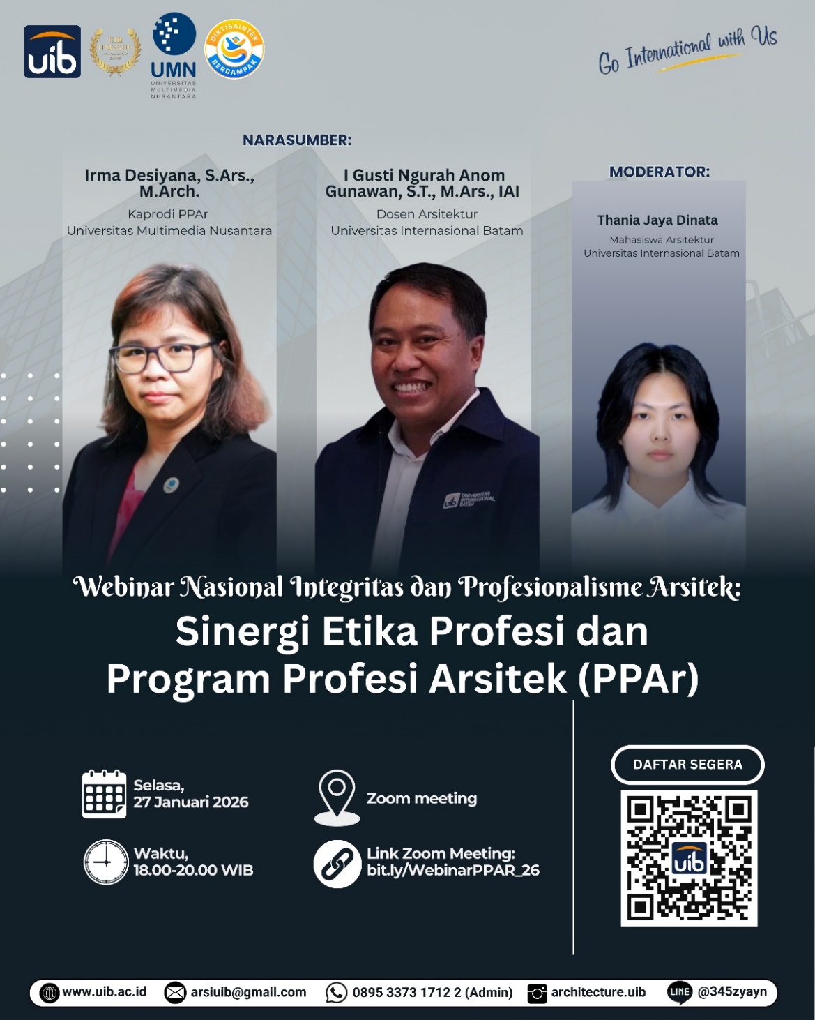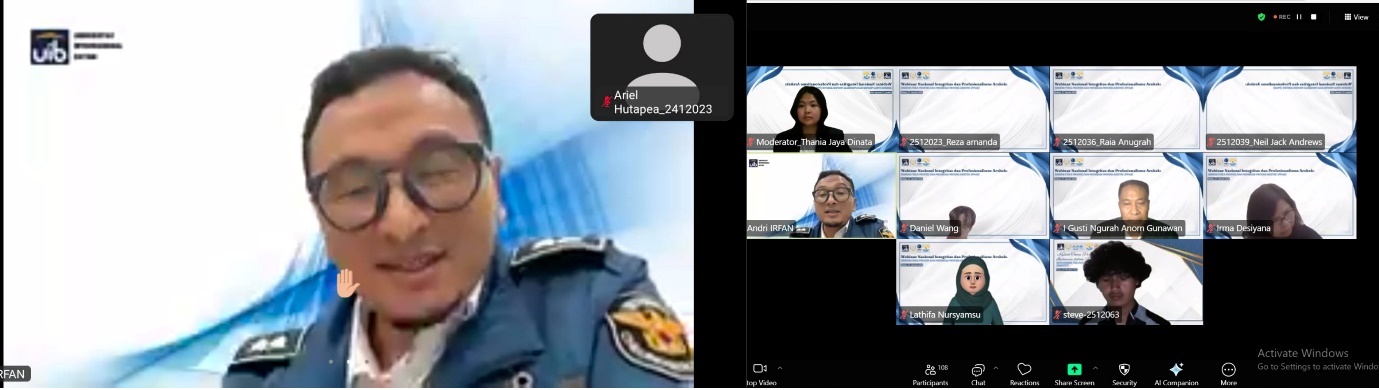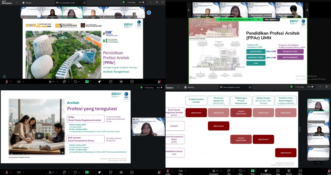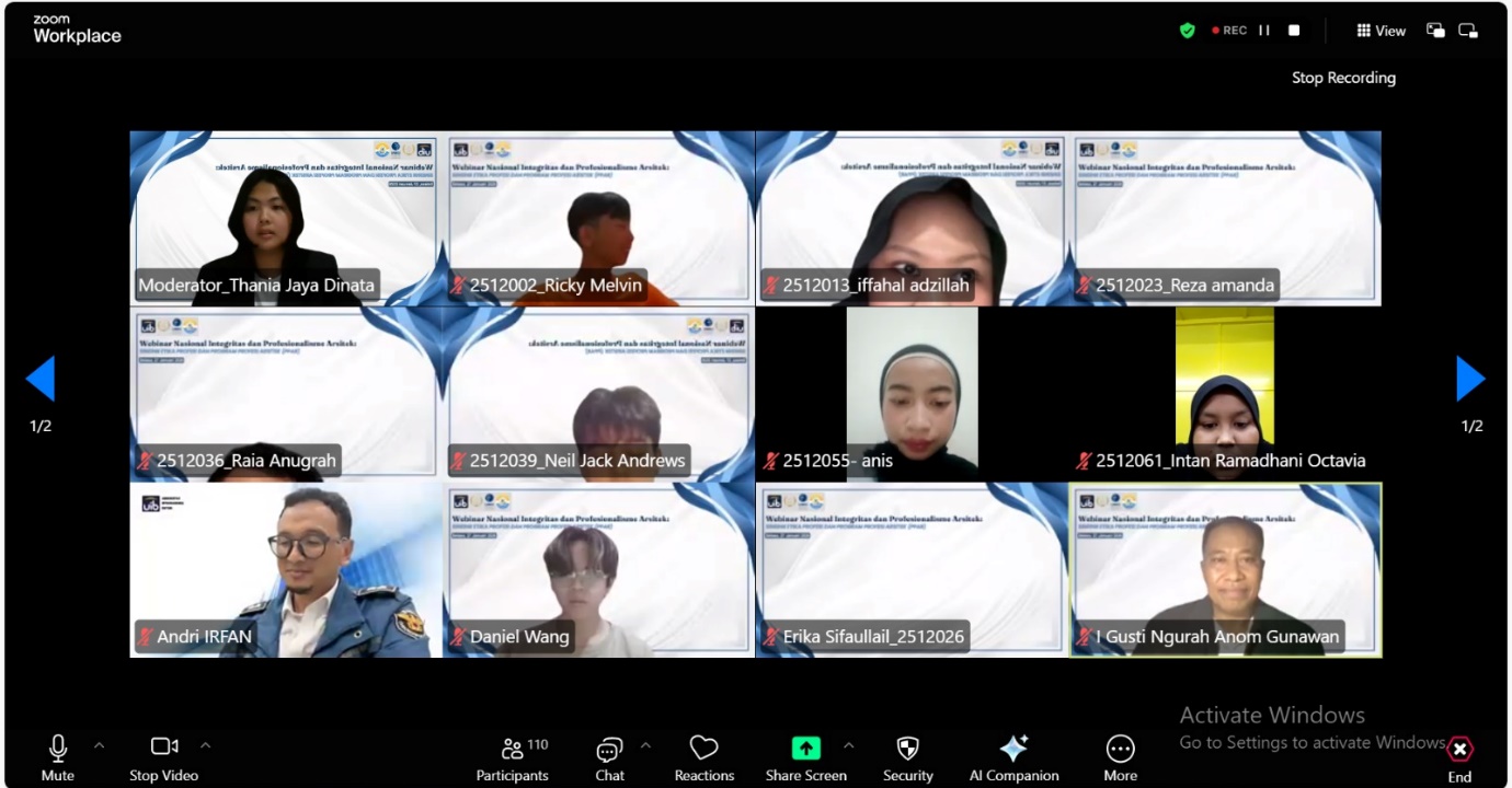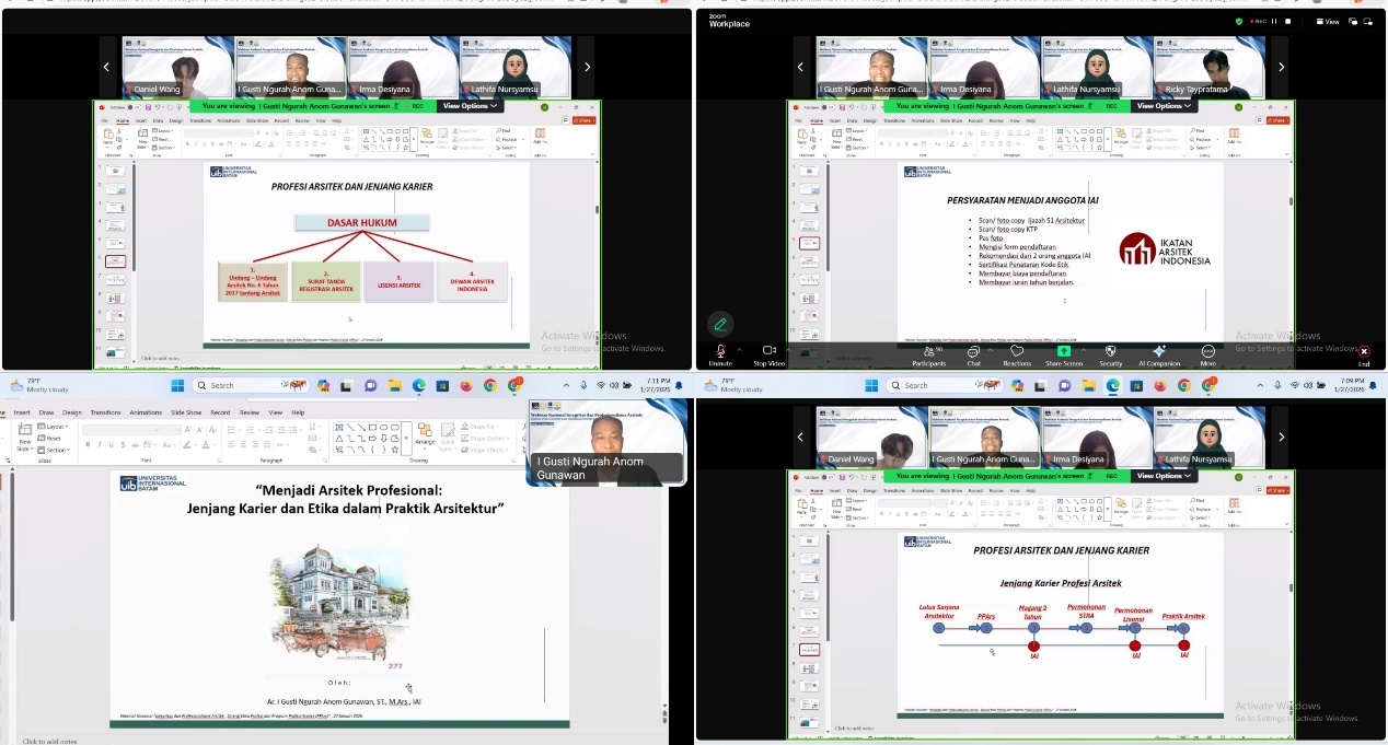 Pada Selasa, 27 Januari 2026, Program Studi Arsitektur Universitas Internasional Batam (UIB) menyelenggarakan kegiatan Webinar Nasional bertajuk “Integritas dan Profesionalisme Arsitek: Sinergi Etika Profesi dan Program Profesi Arsitek (PPar)” yang dilaksanakan secara daring melalui platform Zoom Meeting.