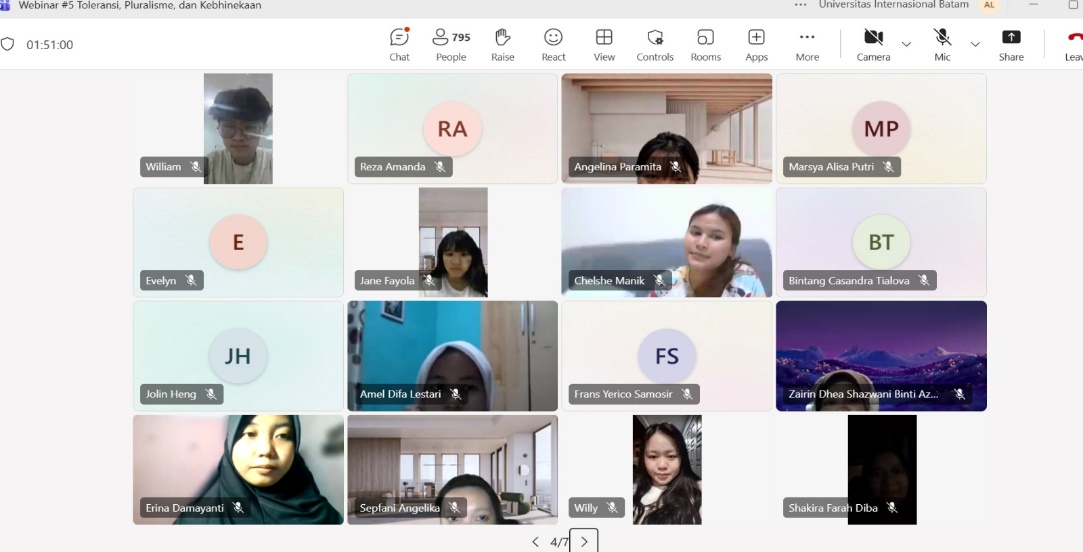 Kegiatan ini dilakukan melalui pemaparan materi, diskusi interaktif, serta refleksi bersama mengenai pengalaman mahasiswa dalam menghadapi keberagaman di kehidupan sehari-hari. Melalui metode tersebut, mahasiswa diajak untuk lebih memahami makna toleransi secara nyata serta menerapkannya dalam lingkungan kampus maupun masyarakat. Selama webinar berlangsung, suasana diskusi terlihat aktif dan antusias, di mana para mahasiswa turut berpartisipasi dengan menyampaikan pendapat, pengalaman, serta pertanyaan terkait isu toleransi dan keberagaman. Interaksi yang terjalin antara narasumber dan peserta membuat kegiatan berjalan dinamis, sekaligus memperkaya pemahaman mahasiswa mengenai pentingnya sikap saling menghargai di tengah perbedaan.
