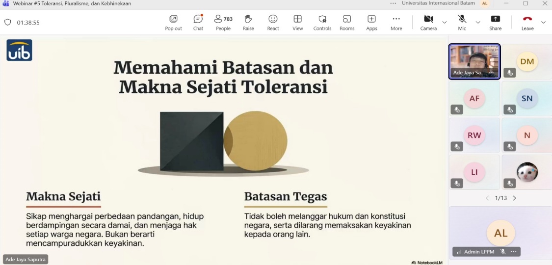 Batam, 10 Maret 2026 – Pada hari Senin, 09 Maret 2026, Universitas Internasional Batam (UIB) melalui Lembaga Penelitian dan Pengabdian kepada Masyarakat (LPPM) kembali menyelenggarakan Webinar Series #5 dengan tema “Pancasila: Sekadar Hafalan atau Pegangan?”. Kegiatan dilaksanakan secara daring melalui Microsoft Teams yang menghadirkan Ade Jaya Saputra, S.T., M.Eng. sebagai narasumber serta mahasiswa dari berbagai program studi. Kegiatan ini dilaksanakan dalam rangka proses pembelajaran pada semester berjalan, sebagai bagian dari penguatan nilai kebangsaan dan karakter mahasiswa.
